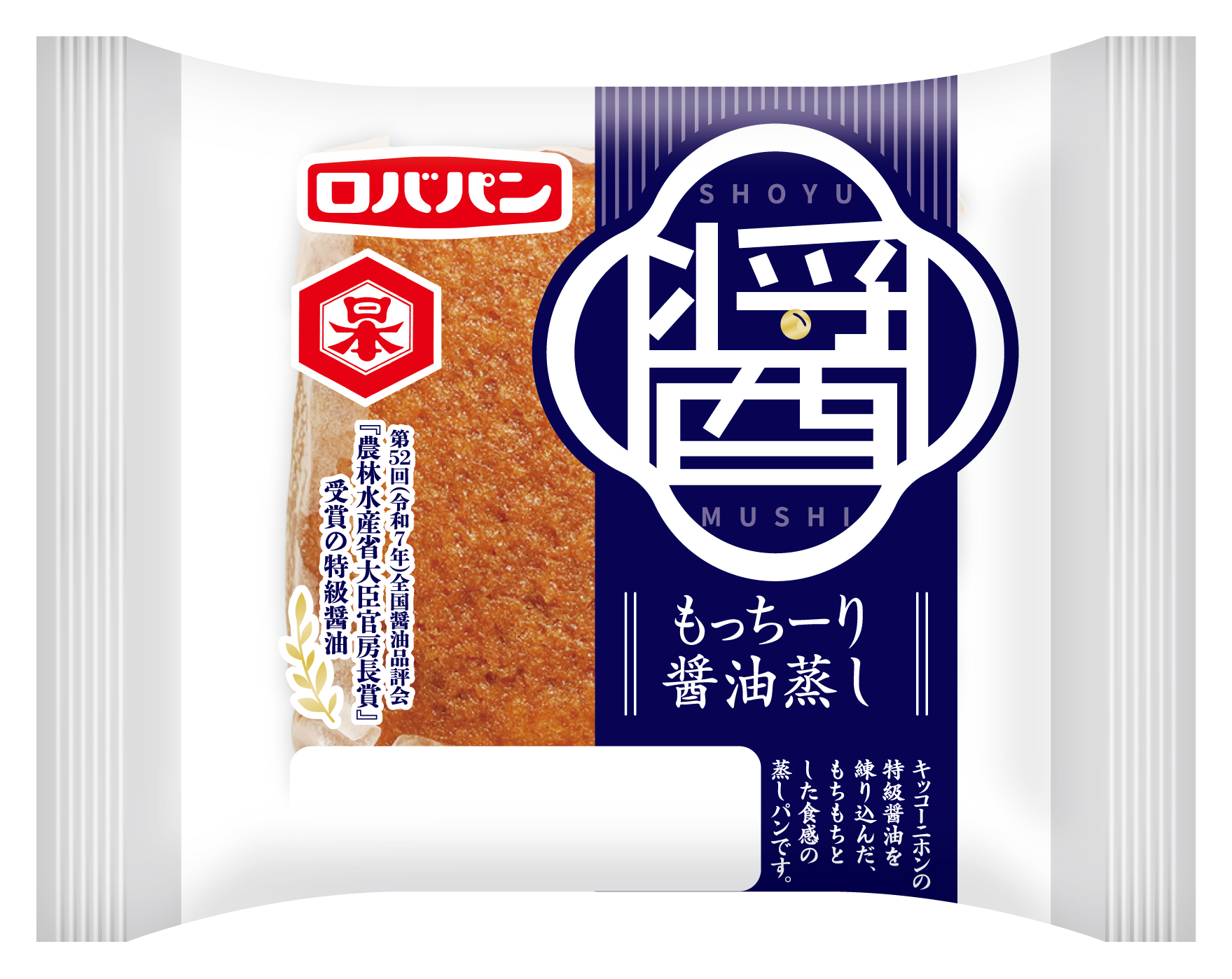 キッコー二ホンの特級醬油を練りこんだ、もちもちとした食感の蒸しパンです。